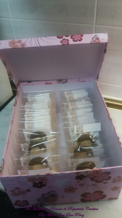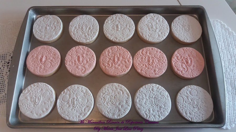 No podían faltar las galletas con la inicial de su nombre, me gustan mucho, creo que le dan un toque muy elegante al conjunto.