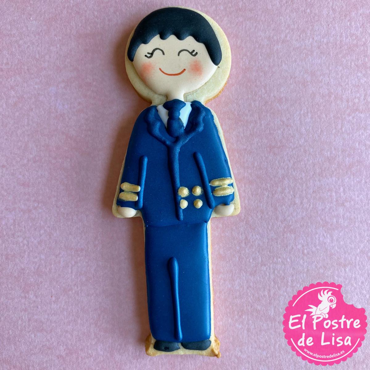 Los diseño que os voy a enseñar a continuación de galletas de comunión, son los que os comentaba anteriormente. Hicimos al niño con trajecito azul estilo militar con detalles en dorados, creo que le daban mucha luminosidad a la galleta!