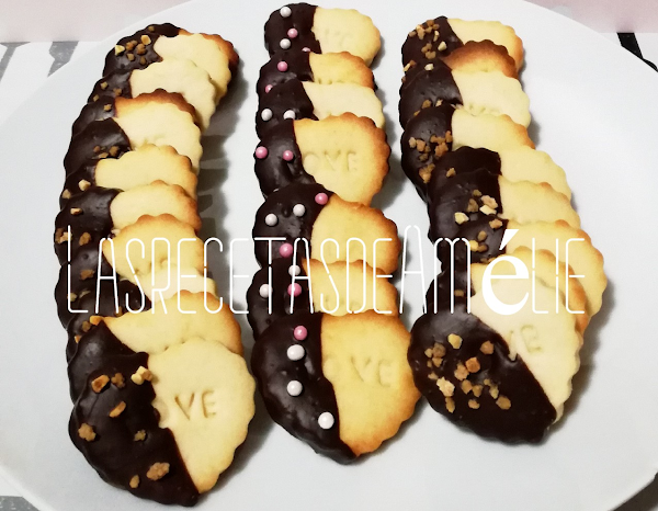 Sumergir la mitad de las galletas en el chocolate y decóralas al gusto.