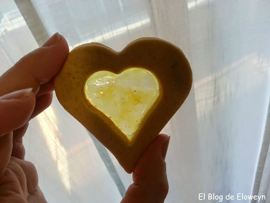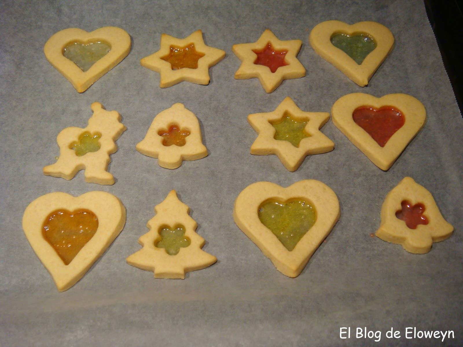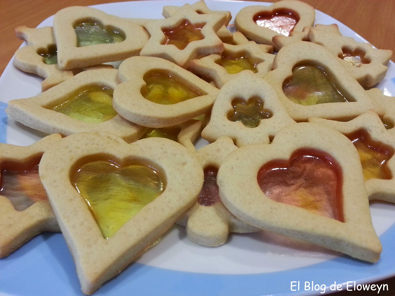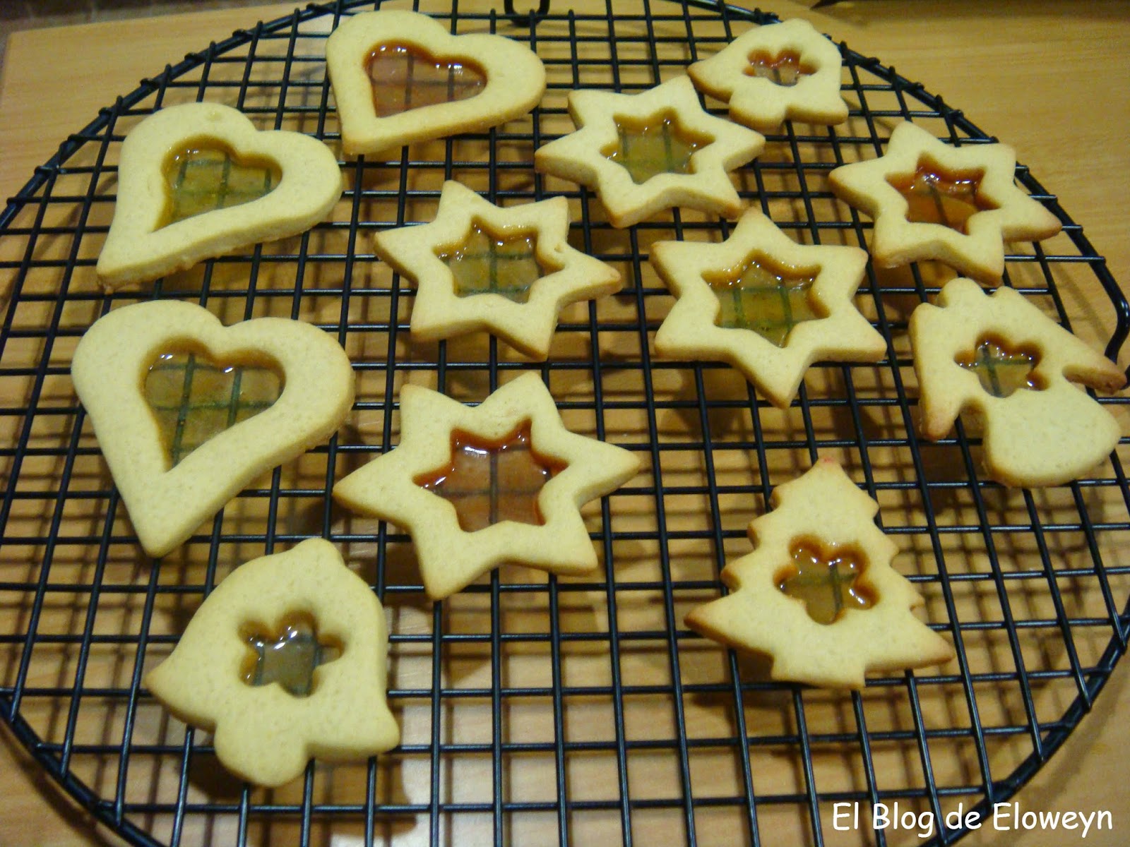 ¡Pues sí! Son galletas de cristal. ¿Y por qué ese nombre? Porque en el centro tienen una capa muy fina de caramelo, y son transparentes al contraluz. De hecho, cuando las muerdes, se agrietan de forma parecida al cristal. Son ideales para hacerlas en navidad. Se hace un agujerito arriba de la galleta usando una pajita y poniendo un cordel que atraviese el agujero se pueden colgar en el árbol. De esta forma, quedan muy bonitas puestas en el árbol y con las luces encendidas.