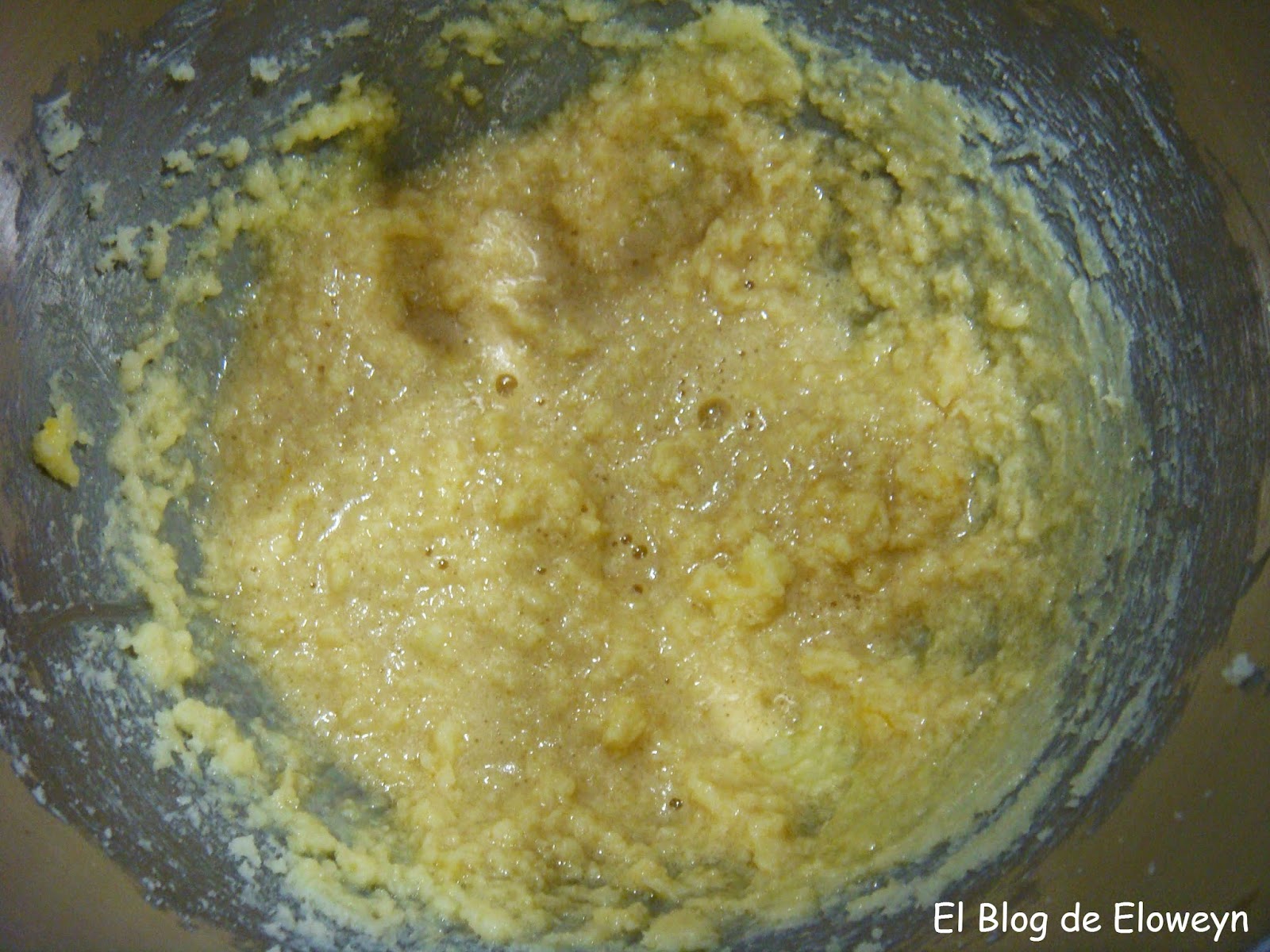 Una vez esté integrado, sin parar la máquina, añadir el huevo (los que lo hagáis a mano, podéis parar para poner el huevo... jajaja)