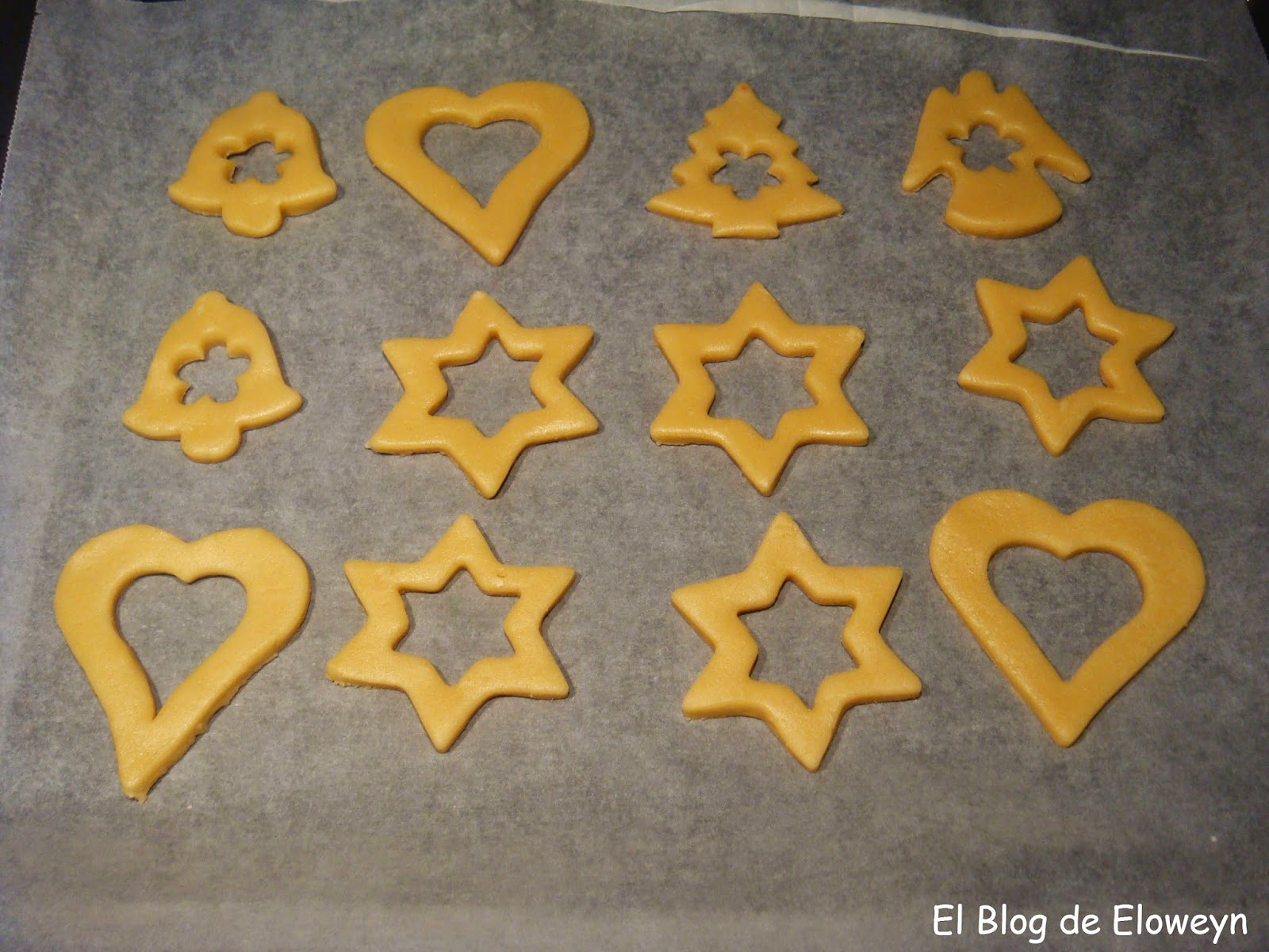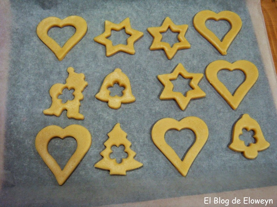 Hace tiempo que quería hacer estas galletas. De hecho, estas navidades las hice, pero debido a un pequeño fallo en la receta que usé, a pesar de que las galletas tenían una pinta estupenda, ¡¡¡amargaban un montón!!! jajaja. Por lo tanto, decidí pasar de esa receta y hacerlas a mi manera, pero el tiempo se me echó encima. Las hice después de reyes y ya no les hice ningún agujerito para colgar en el árbol... de hecho, el árbol ya estaba guardado en su sitio, esperando a que lleguen las navidades del año que viene. jajaja.