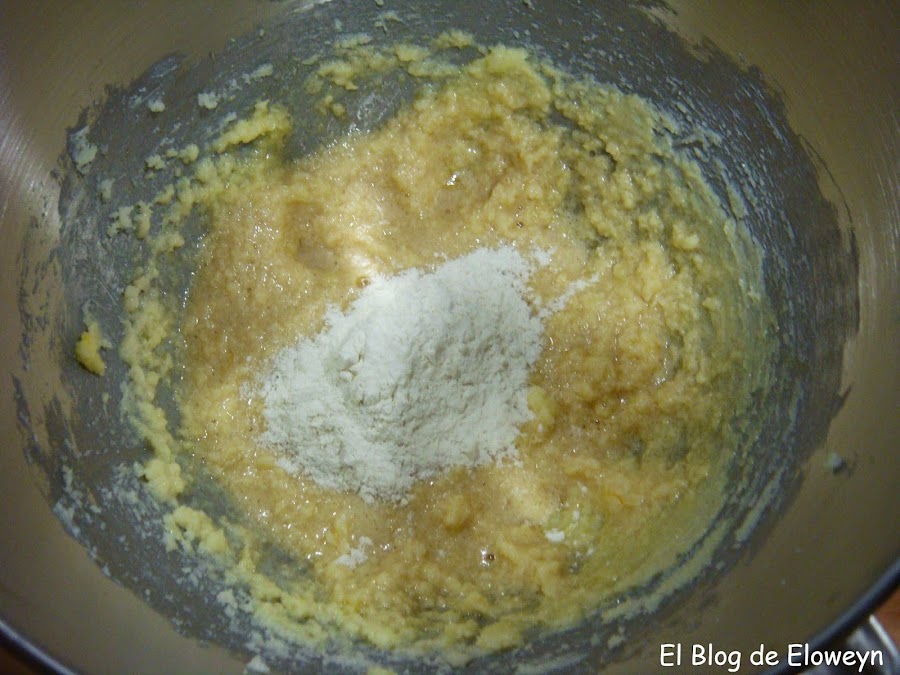 Ahora, ir añadiendo poco a poco cucharadas de harina. No añadáis más harina hasta que la que habéis puesto no se haya integrado. Los que lo hagáis con batidora, usando barillas o a mano, hacia el final tendréis que usar las manos para acabarlo de mezclar.