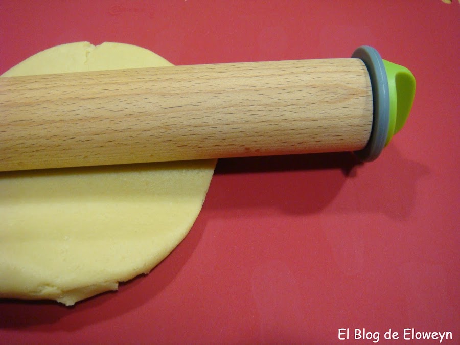 Y después del rollo que os he explicado, sigo con la receta. Usaremos un rodillo y aplanaremos la masa unos 6 milímetros. Yo siempre uso un rodillo graduable que tiene unos aros de diferentes medidas. De esta forma, la masa queda siempre a la misma altura. Si no tenéis uno de estos rodillos, calculad más o menos un grosor de 6 milímetros.