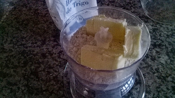 1º Yo primero junté el harina con la mantequilla. Luego agregué los demás ingredientes y junté con las manos hasta formar una bola.