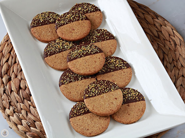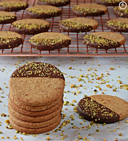 Yo he bañado la mitad en chocolate y le he espolvoreado trocitos de pistacho.