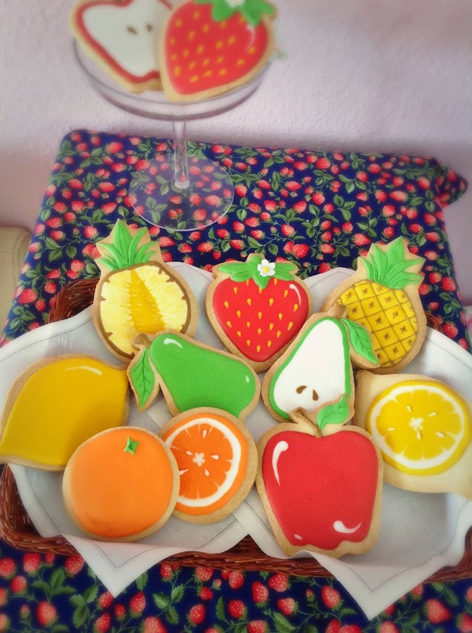 ¿A alguien le apetece una fruta?Se me olvidaba contaros que estas galletas fueron un regalo para el frutero del mercado de Triana. Mis padres compran allí siempre y quisieron obsequiarle con ellas. Un regalo estupendo, ¿no os parece? Luego, todos querían comérselas y él no dejaba que nadie las tocara. ¡Le encantaron!