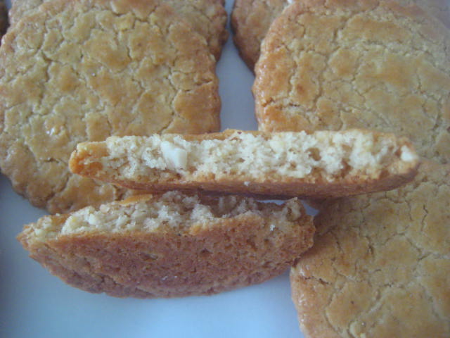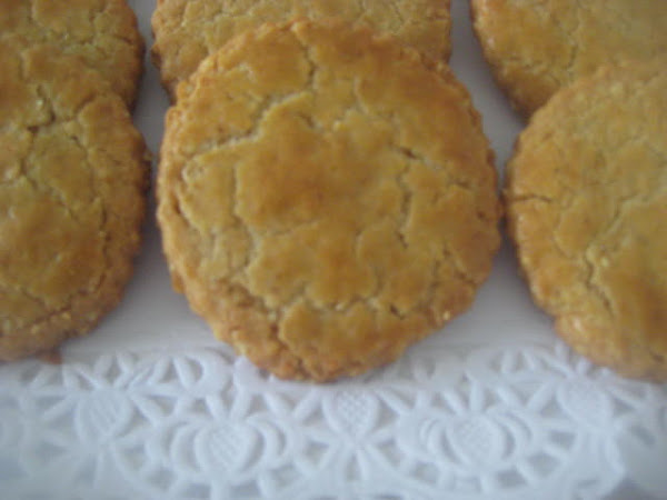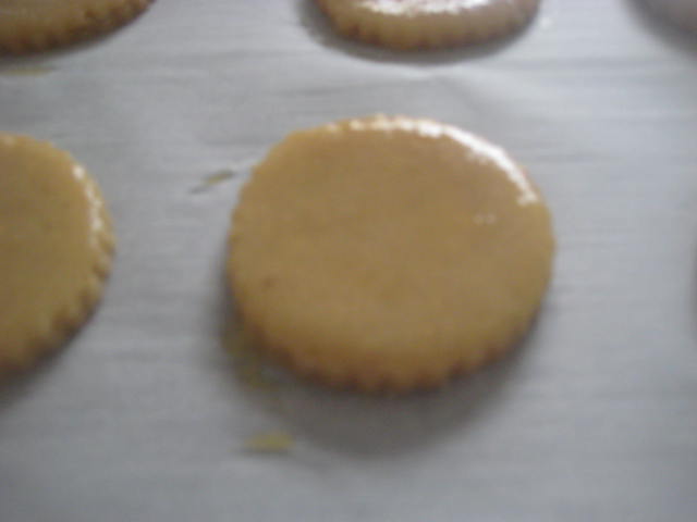 Preparación Hacer una mezcla con la harina floja, las almendras, las nueces, las avellanas molidas, el impulsor o levadura química y el pellizco de sal. Reservar. Por otro lado trabajar la mantequilla en pomada con el azúcar y agregar seguidamente los huevos de uno en uno de forma que hasta que no esté bien integrado el primero no se añade el segundo. Una vez obtenida una cremita añadir la mezcla anterior de harina y frutos secos y mezclar bien con las manos hasta lograr una masa densa. Estirar entre dos papeles de horno, dejando de un grosor aproximado de 4-5 mm. Corta discos con un cortador y colocar en bandejar de horno forrada con papel. Pintar todas con huevo batido. Cocer en el horno a 190-200º C durante 10-15 minutos. Una vez doradas, retirar del horno y dejar enfriar sobre rejilla antes de consumir.