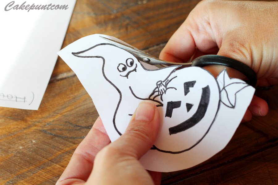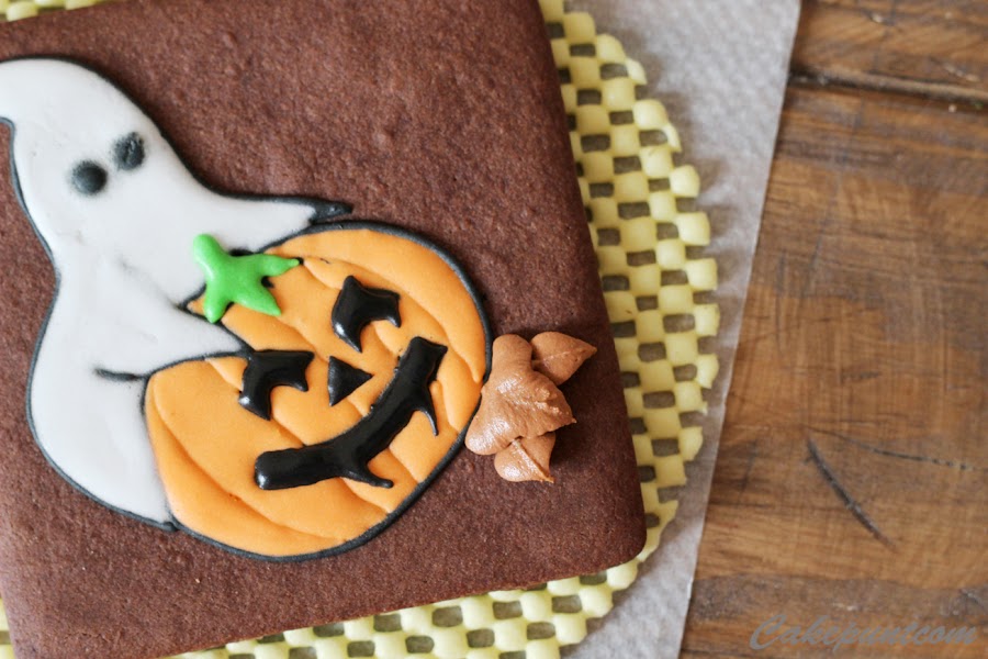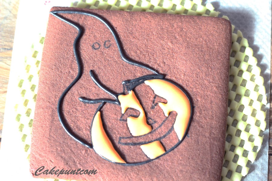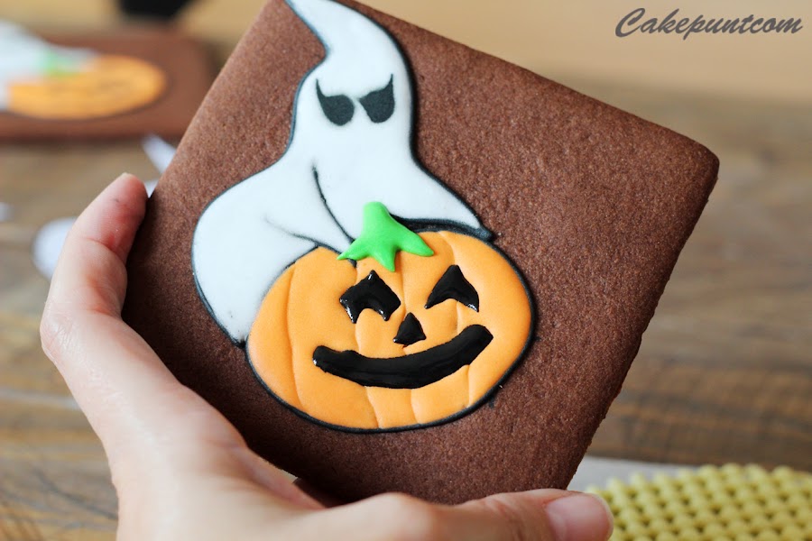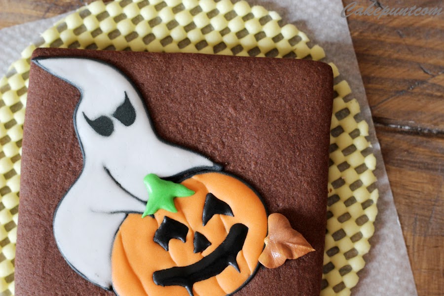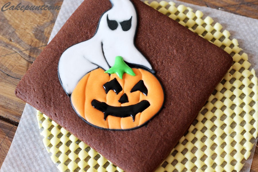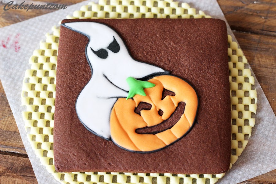 Mientras esperamos que seque el naranja, rellenamos con glasa blanca (consistencia media) el fantasma.