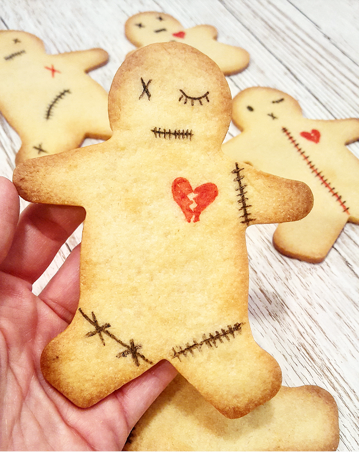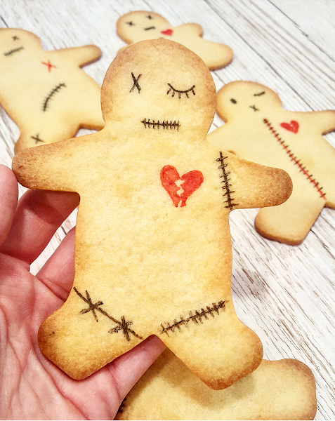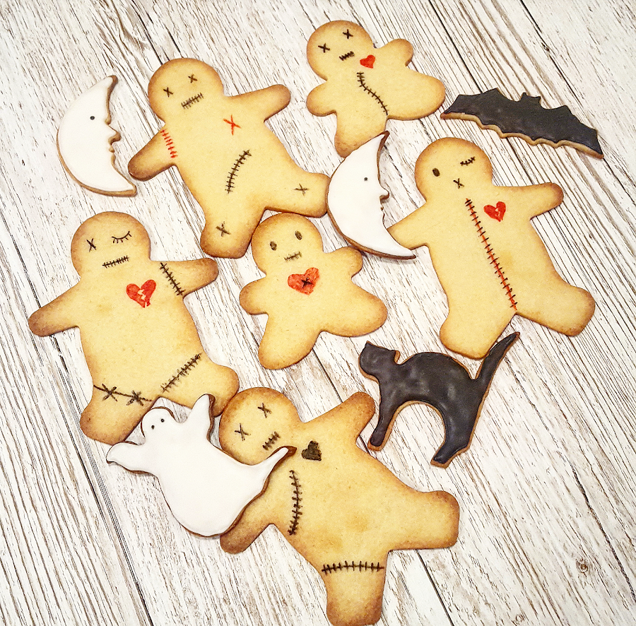 Unas las he llamado Galletas Vudú (una idea que había en el curso online que hice de Alma Obregón) y las he pintado con bolígrafos de tinta comestible como estos. De esto no os explico más porque se trata sólo de echarle imaginación.