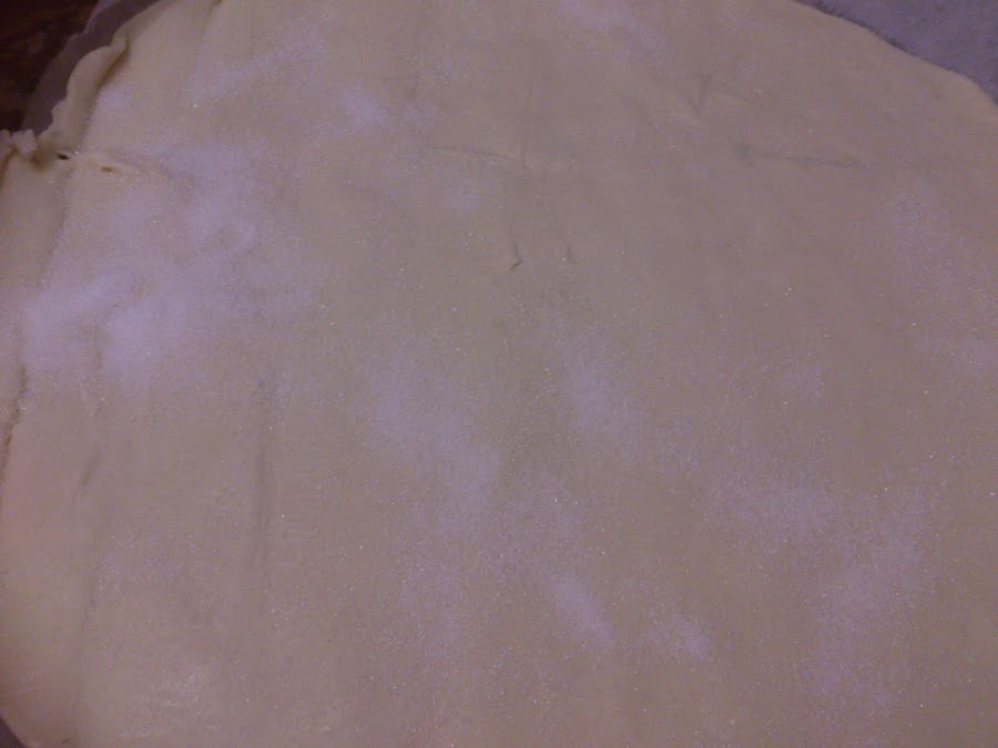 Estiramos la placa de hojaldre y la estiramos un poco con el rodillo.