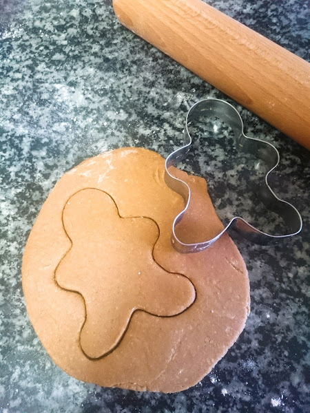Formamos una masa homogénea, vamos estirando con el rodillo y sacando a nuestro señor jengibre!