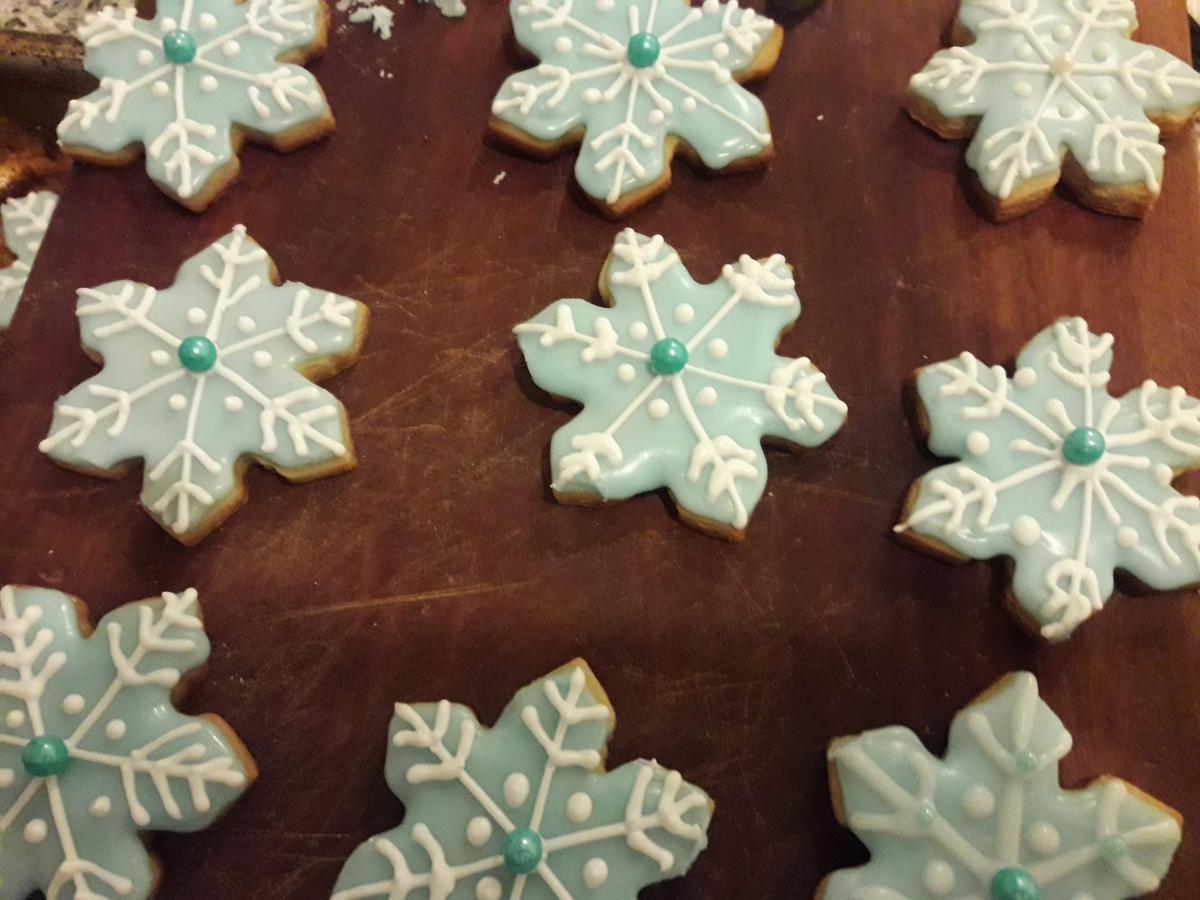 Hago galletas de forma de estrellas , pinos, muñecos de jengibre y varios motivos de galletitas y tambien de chocolate.