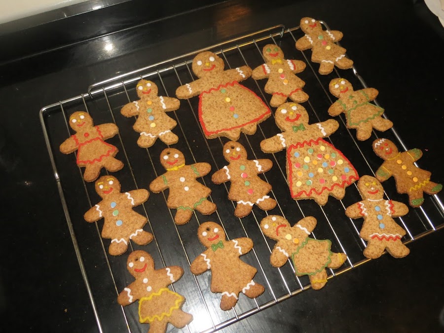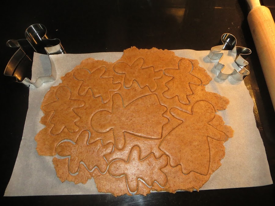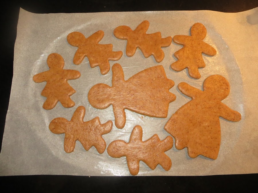Ponemos a precalentar el horno a 180º con calor arriba y abajo y ventilador. Colocamos papel de horno y encima comenzamos a estirar nuestra masa, cuando ya la tengamos fina, cogemos un molde de muñeco y vamos realizando nuestras galletas. Las metemos al horno durante 10 minutos o hasta que veamos que están doradas, las sacamos y con mucho cuidado, ya que si no se os pueden romper, las colocamos encima de una rejilla.