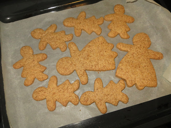 Se mezclan los ingredientes secos (harina, bicarbonato, sal, canela, jengibre, y azúcar). Luego batimos el huevo y lo mezclamos con lo anterior. Metemos 15 segundos la mantequilla al microondas, aunque ya estará un poco blanda porque la teníamos a temperatura ambiente y la añadimos. Movemos todo bien con la mano hasta que nos quede una masa que no sea pegajosa, en caso de que sí lo sea añadirle un poco más harina.