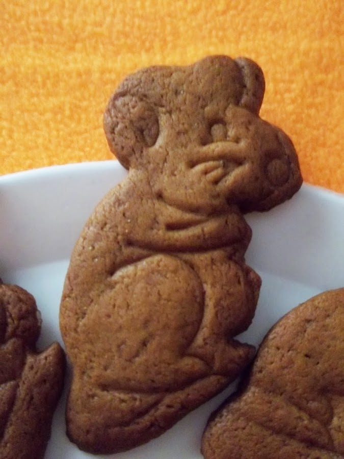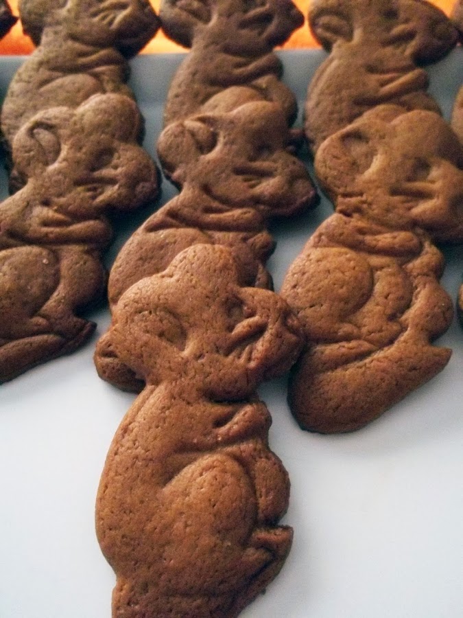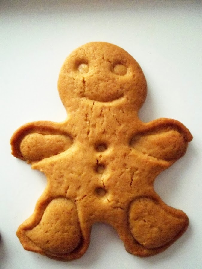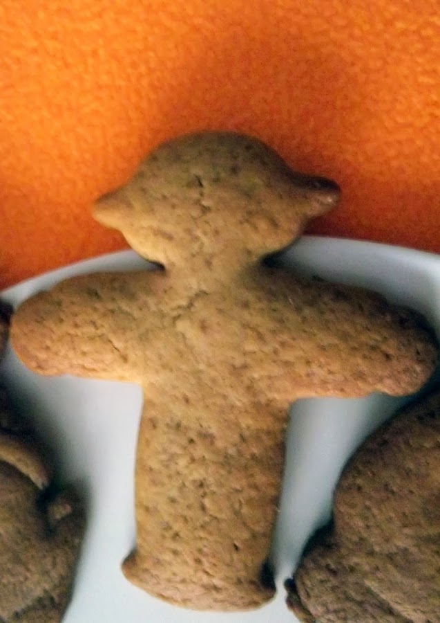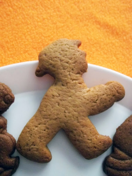 Hace poco mi chacha me trajo jengibre en polvo porque ella sabía que yo llevaba tiempo queriendo comprarlo pero no lo encontraba y me ha faltado tiempo para hacer recetas con él. Busqué la receta de las típicas galletas del muñeco de jengibre americanas y encontré ésta de Pequerecetas, en mi receta he variado algunas cantidades de los ingredientes, además no he usado clavo.