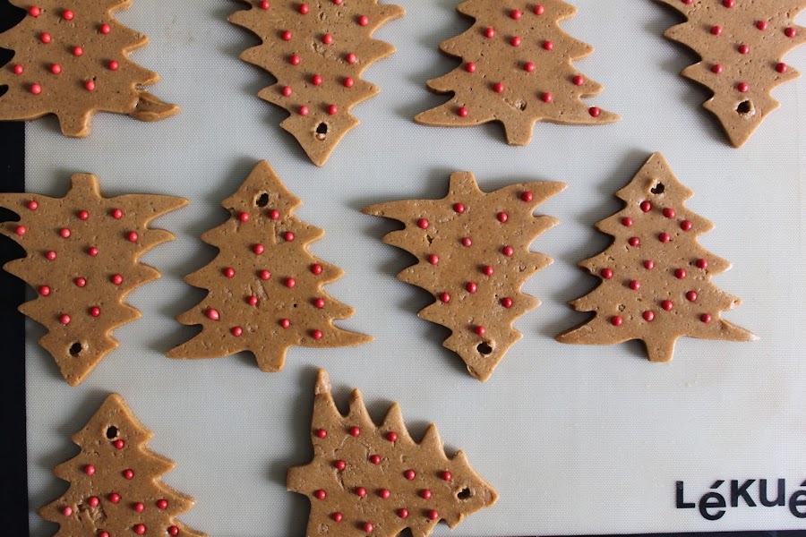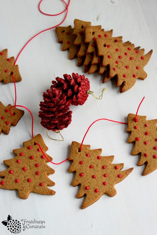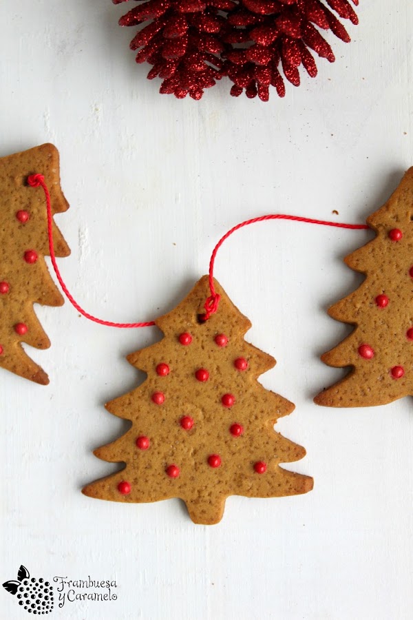 Yo fui probando a poner algo de aquí, algo más de allá y salieron estos arbolitos tan tan bonitos con los que hice una guirnalda. Podemos comerlas o colgarlas del árbol (si hacemos un agujero a la masa en crudo después podemos ponerles un cordón o un lacito). Yo hice arbolitos pero podéis usar el cortador que más os guste, como por ejemplo el clásico gingerbread man.