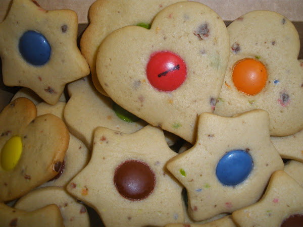 Había visto algunas galletas con lacasitos en la red pero me gusta tanto nuestra receta de galletas de mantequilla que nos arriesgamos a improvisar un poco y el resultado es realmente satisfactorio, como siempre nuestro pequeño Daniel es el que da el visto bueno a estas recetas tan aptas para pequeños como para los grandullones que adoramos los dulces, hoy he tenido una ayudante de lujo, mi peque Silvia, que anda pachucha y me ayudó un montón con la receta..