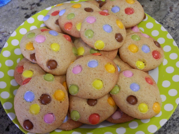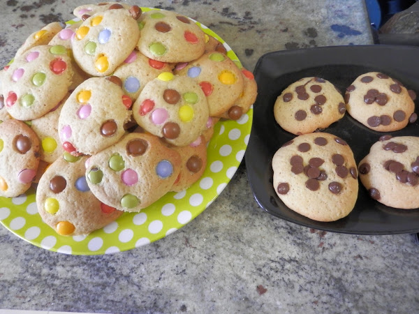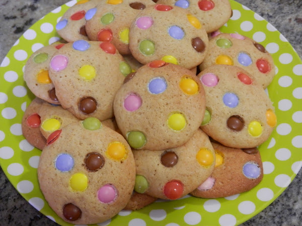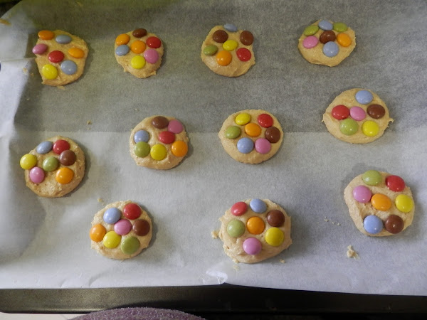NOTA.- las galletas son sin lactosa pero los lacasitos son de chocolate con leche, por ello si quieres que sean completamente sin lactosa, ponle pepitas de chocolate puro y serán aptas.