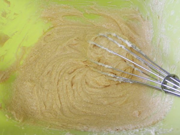 Cuando tengas la mantequilla en pomada, añade los dos tipos de azúcar y bate bien.