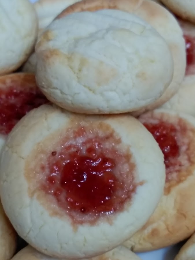 3.- Hacer bolitas y ponerlas en la bandeja forrada con papel. Aplastarlas un poquito con un tenedor. También podemos hundirles el dedo en el centro para formar un hueco que después de horneadas podremos rellenar con mermelada.