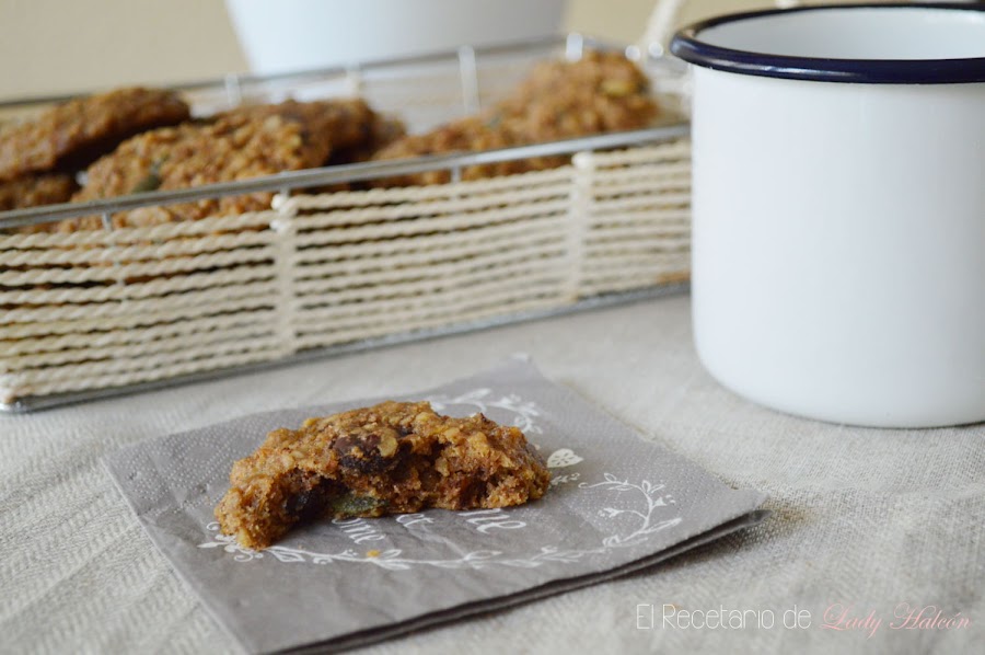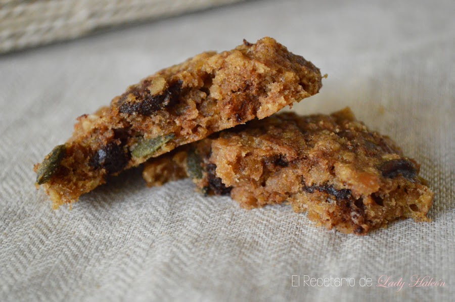 Y he de decir que estas galletas han sido todo un descubrimiento. Pese a lo que pueda parecer, no saben para nada a lentejas. Llevan la suficiente cantidad de avena, frutos secos y chocolate como para que no las identifiques a no ser que te lo digan y, aunque lo sepas y lo intentes, no creo que lo consigas... Su textura me ha recordado mucho a las brownie cookies, con el centro blandito estilo bizcocho ¡están riquísimas!