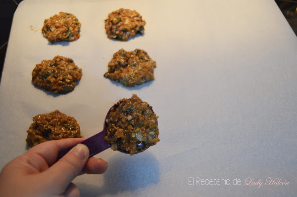 Sobre una bandeja cubierta con papel de hornear o un molde para galletas, coloca la masa creando pequeños montoncitos. Si utilizas la bandeja, deja suficiente espacio entre ellas porque la masa crece.