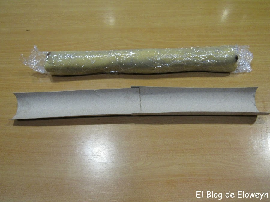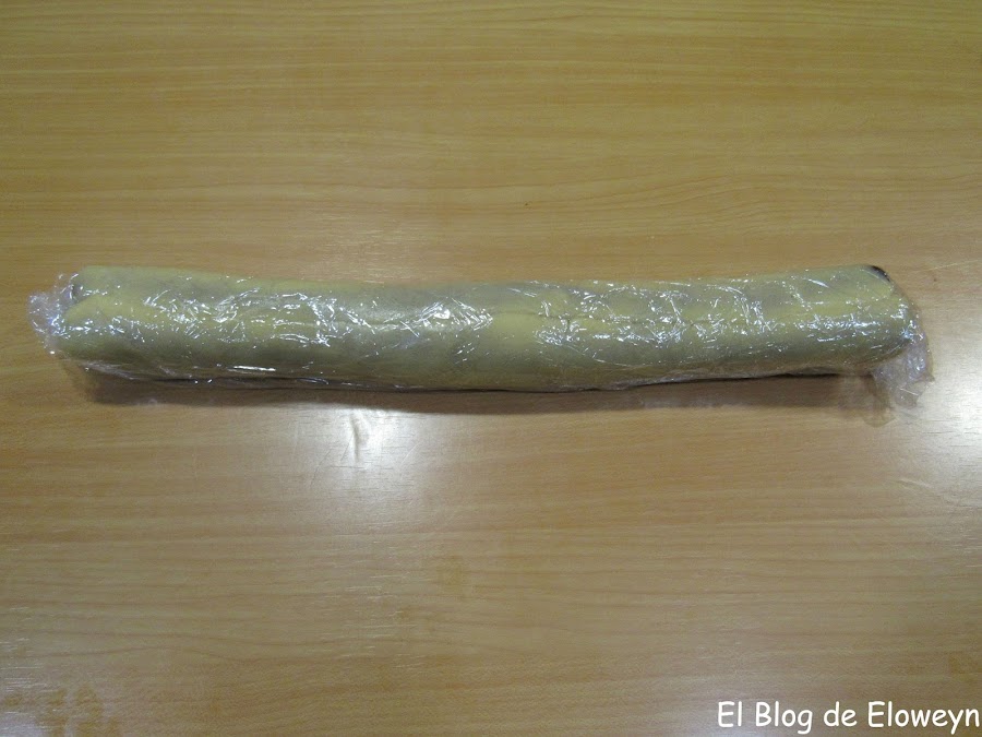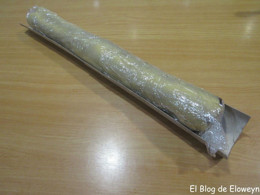 Metemos el cilindro en la nevera un mínimo de unas 3 horas para que la masa se ponga dura. Yo lo tuve toda la noche.