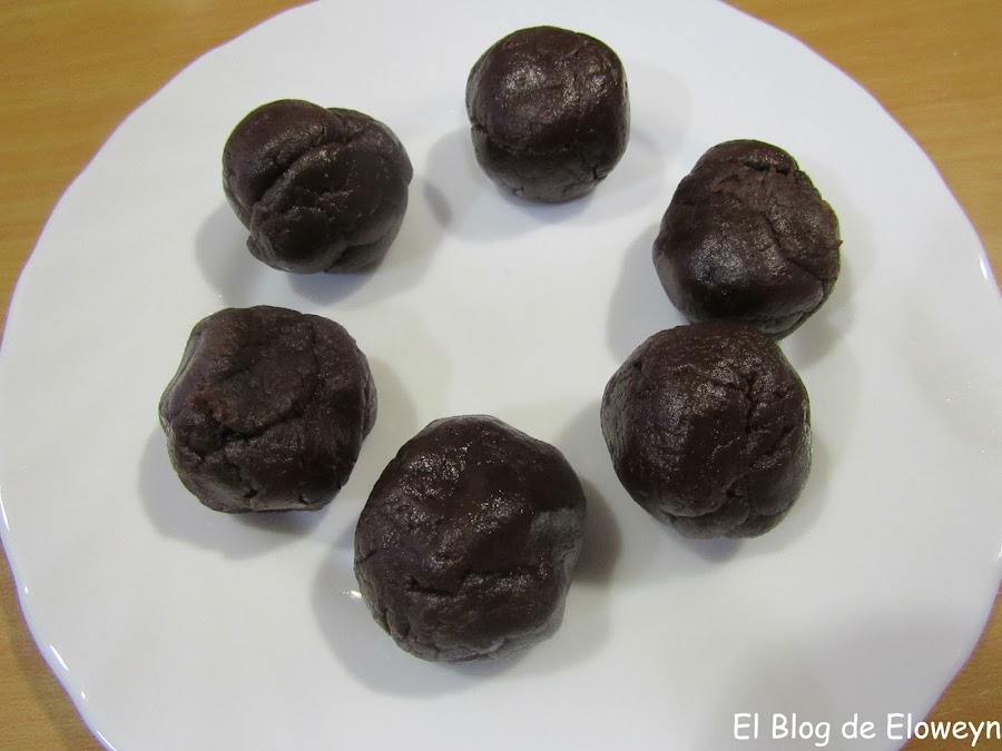 Igual no os pasa, pero a mi sí que me pasó. Al llevar mucho cacao, la masa de color negro se cuarteaba. Por lo tanto, y como luego tenía que manipularla con el rodillo, le añadí unos 5 gramos más de mantequilla. La mezclé hasta que estuvo bien integrada.