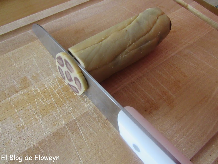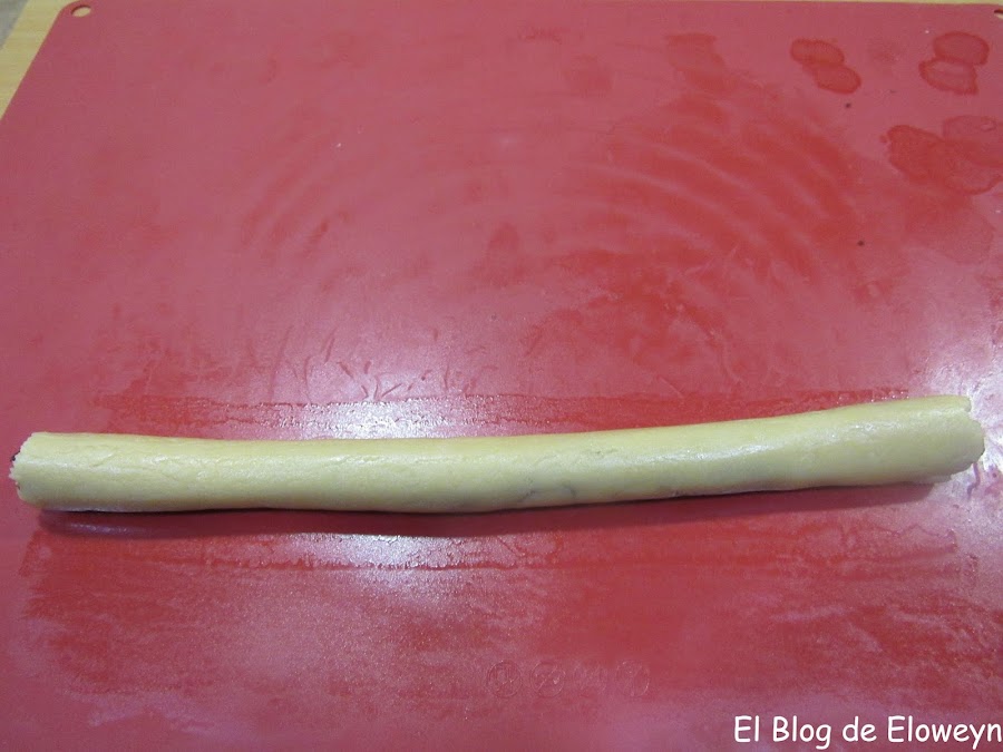 Cortamos el cilindro en rodajas de unos 4 o 5 milímetros (como si fuese un chorizo, vamos... jajaja)