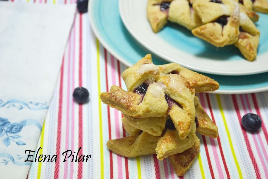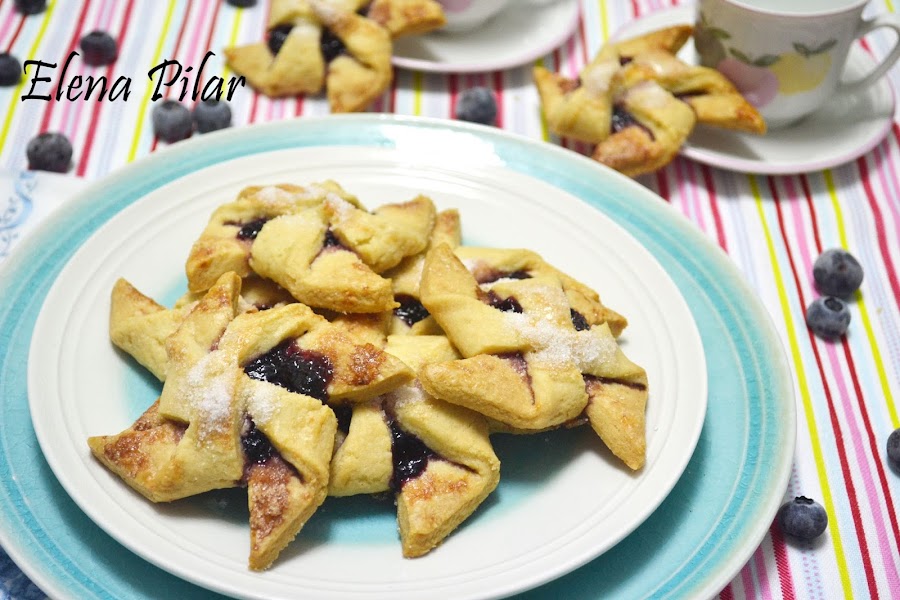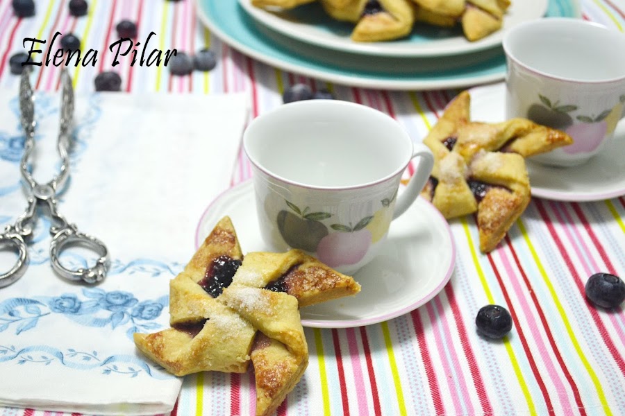 La masa no es más que la que habitualmente preparo para cubrir el apple pie. Tan solo he reducido la masa a la mitad, para que salga la cantidad justa como para llenar una bandeja de horno, y le he añadido lima -su zumo y ralladura-, con lo que conseguimos un sabor cítrico delicioso y suave, que combina genial con la mermelada de arándanos que llevan en el centro.