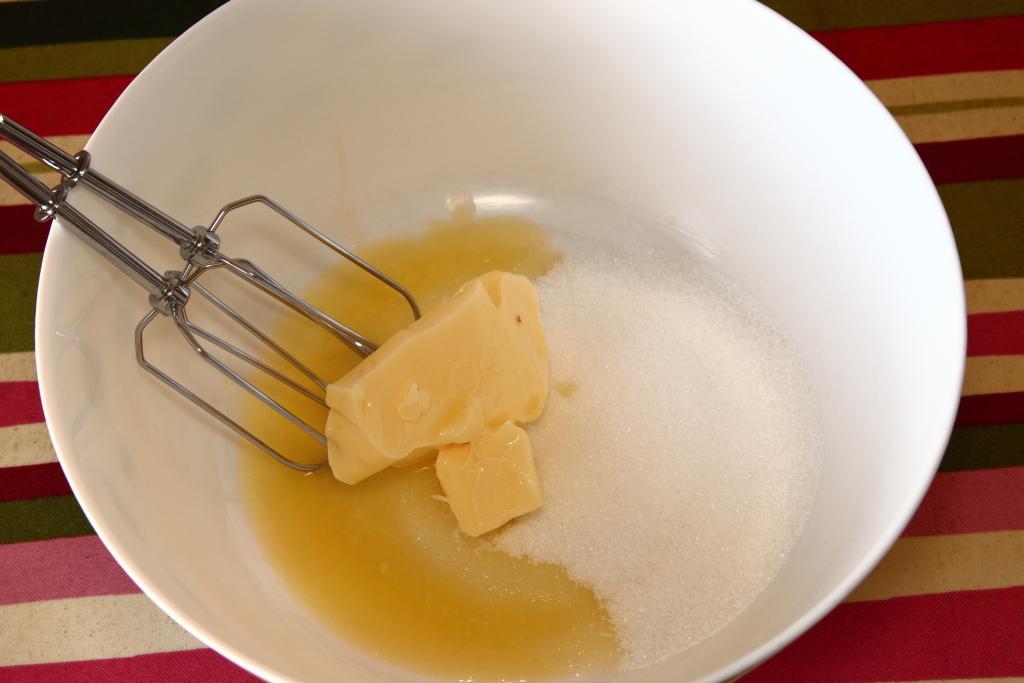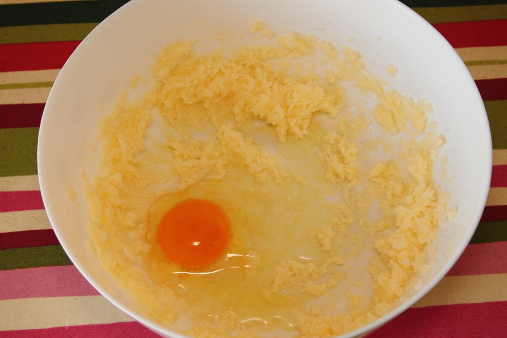En un bol amplio batimos la mantequilla con el azúcar, con ayuda de unas varillas eléctricas, hasta obtener una crema. Añadimos el huevo y seguimos batiendo, incorporamos la ralladura del limón continuamos con las varillas.