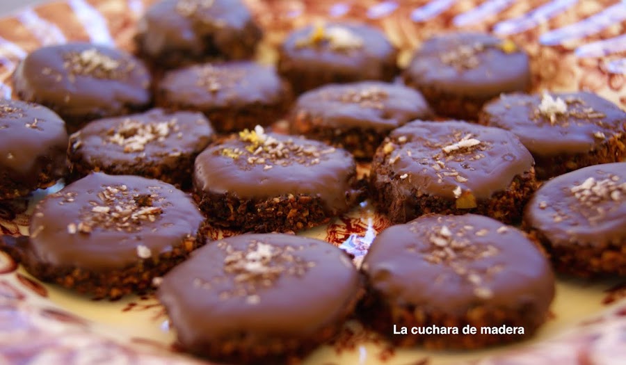 Derretimos el chocolate con el aceite de coco; la proporción es por cada 100 gramos de chocolate 15 gramos de aceite ( coco, girasol, oliva..) para las coberturas. Vamos bañando cada galleta con el chocolate por un lado y las dejamos enfriar un poco. Las decoramos con un poco de ralladura del limón, escamas de sal y coco.