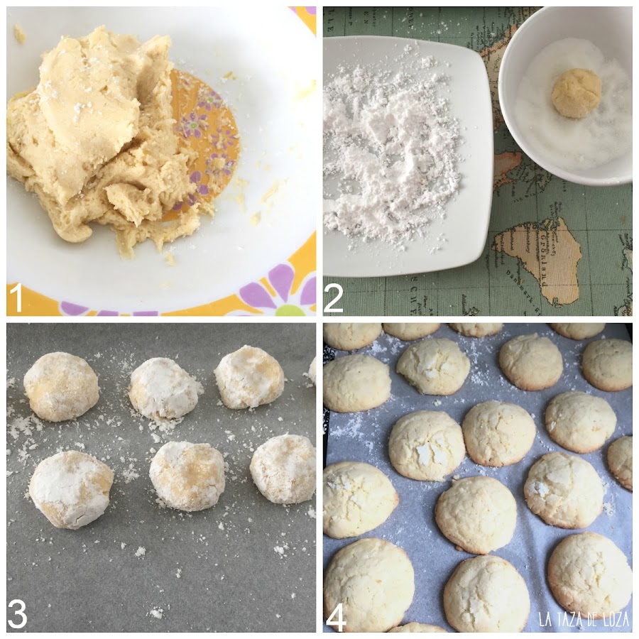 Se saca pasado este tiempo y con las manos vamos haciendo bolitas que se pasarán primero por el azúcar molida y luego por el azúcar glas.