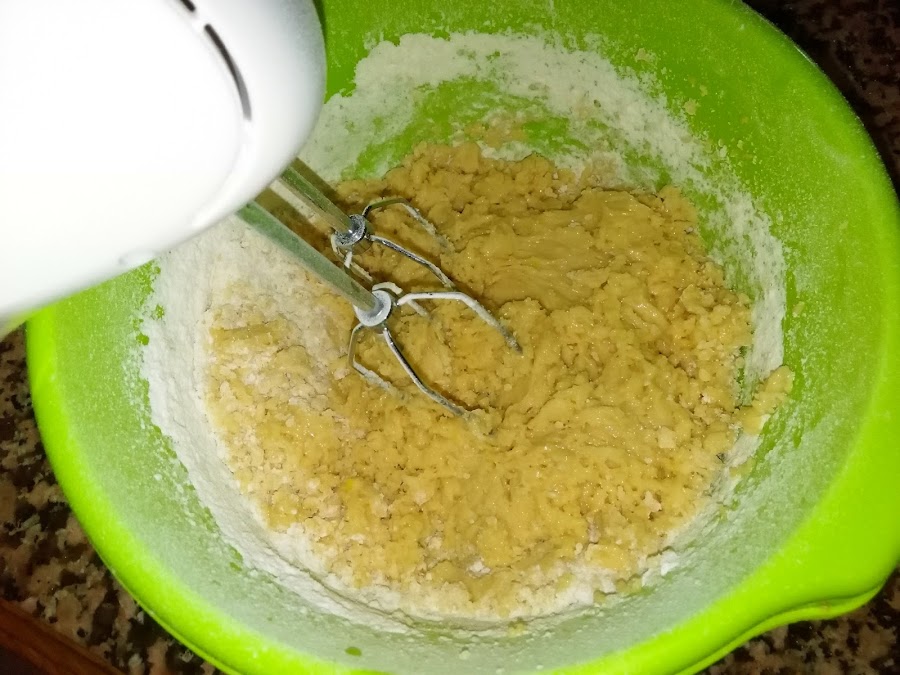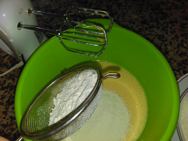 Después echamos la harina tamizada junto con la levadura química