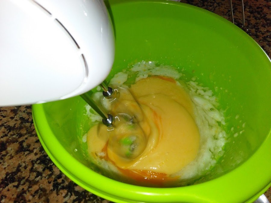Ponemos en un recipiente el huevo, el azúcar, la ralladura y el zumo de limón y batimos con ayuda de la batidora