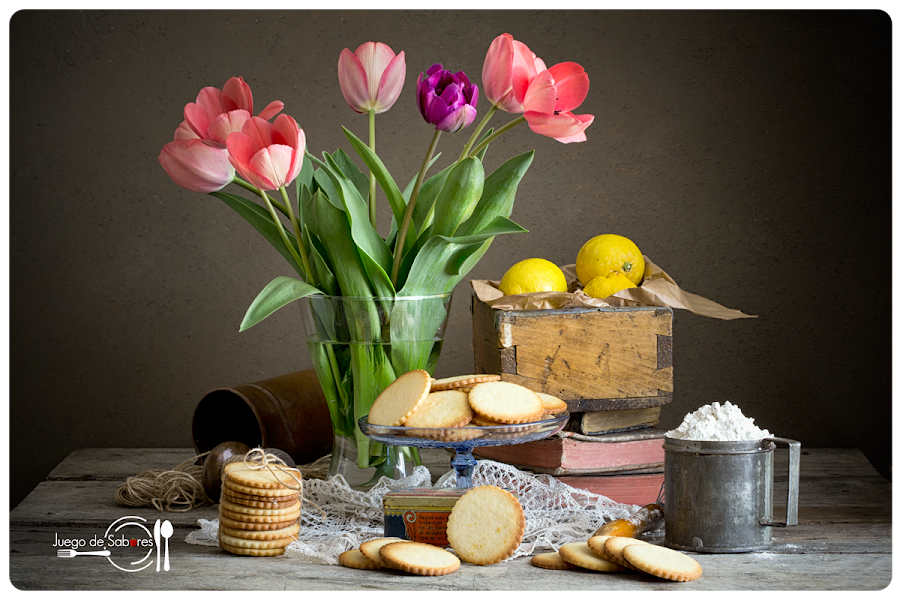Si hay algún ingrediente casi imprescindible en la cocina a la hora de hacer repostería es el limón. El otro día, repasando nuestro índice de recetas de la “A a la Z”, pudimos comprobar que hemos utilizado el limón en bizcochos, pastas, helados, magdalenas, mousses, tartas y en el glaseado para adornar roscos. Y es que el limón da mucho juego. Cuando lo rallas desprende un aroma que lo impregna todo y cuando lo utilizas en repostería su sabor perdura tiempo y tiempo en las papilas gustativas. Se le puede sacar más partido que a la naranja. Teníamos unos hermosos limones y hemos decidido hacer galletas. Nada del otro jueves. Son muy sencillas y la familia las ha recibido con agrado.