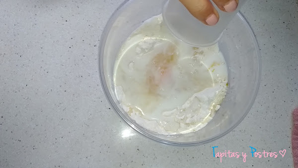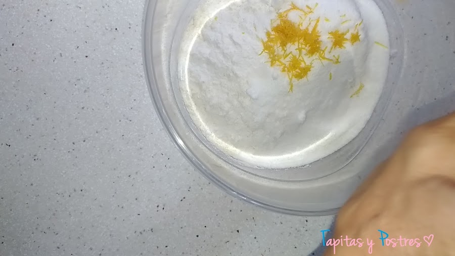 Ponemos en un recipiente la harina, la sal, el bicarbonato, la levadura y la ralladura de limón.