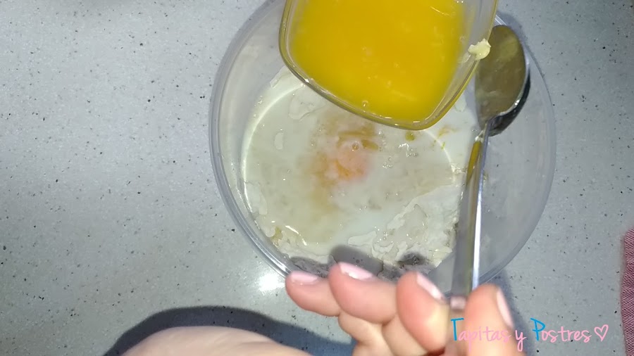 Por último, la mantequilla fundida. Mezclamos muy bien y amasamos.