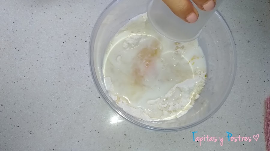 Incorporamos la leche y el huevo. .