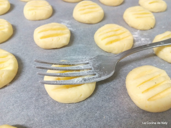 Hacemos unas bolitas y con un tenedor le damos la forma.