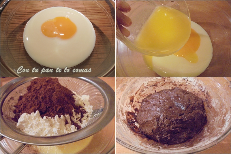 3. Tamiza la maizena y el cacao a través de un colador y mezcla poco a poco. Al principio podrás hacerlo con una cuchara pero luego tendrás que seguir con las manos hasta incorporarla toda.