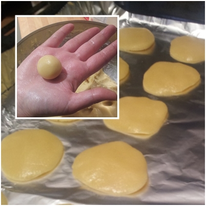 Podrás estirar la mezcla sobre una superficie enharinada (yo personalmente prefiero coger trocitos, haces bolitas y las aplastas con las manos, quedan redonditas y diferentes unas de otras, (ideales para hacer con niños).