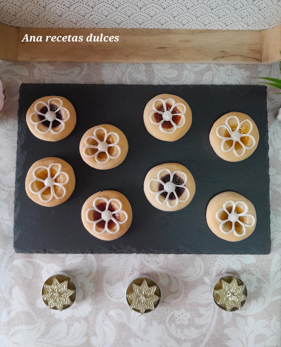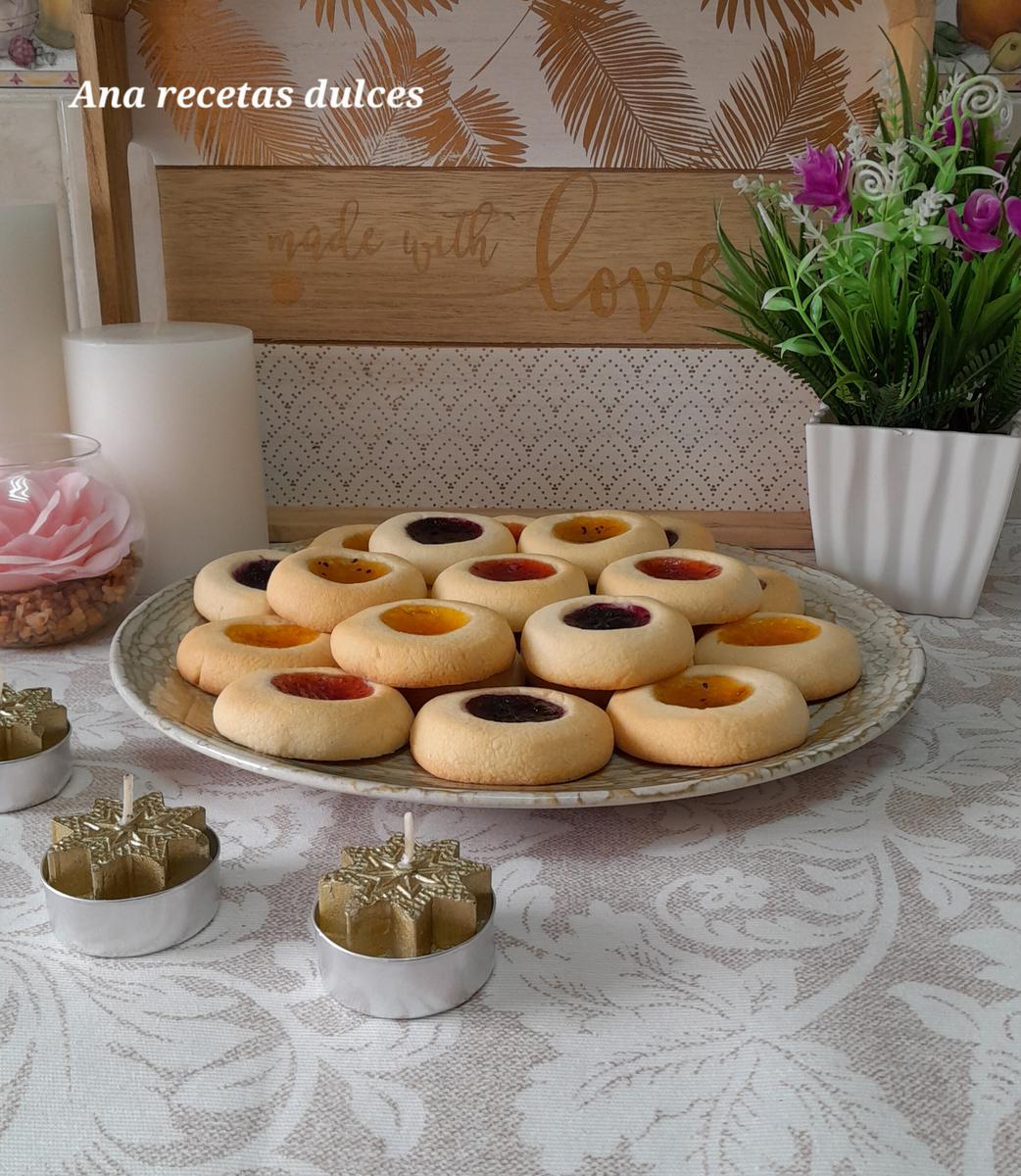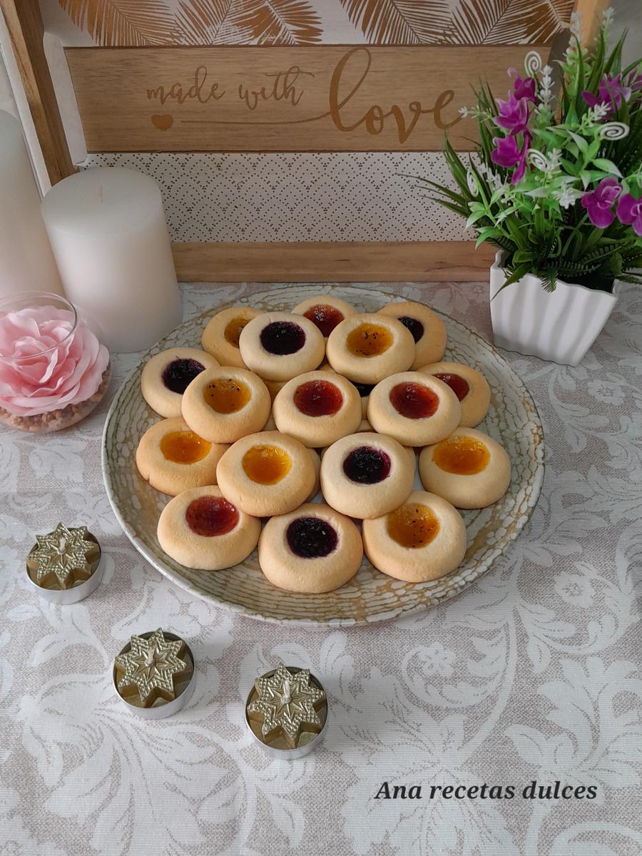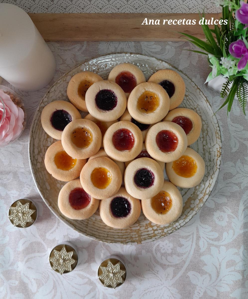 Con pocos ingredientes, tendréis unas galletas riquísimas, crujiente por fuera y blanditas por dentro, con el centro relleno de una dulce mermelada.
