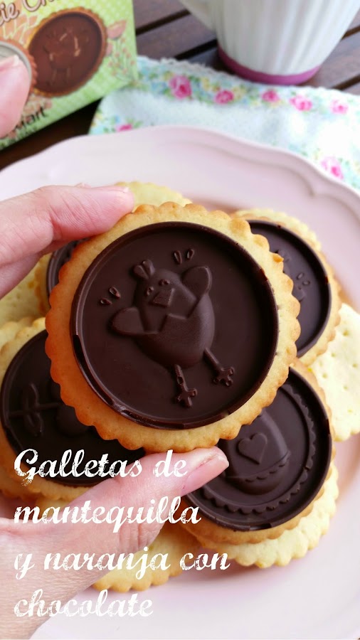 Mientras se enfrían nuestras galletas, deshacemos el chocolate al baño maría. No lo vamos a rebajar con leche ni nada, por que nos interesaba que el sabor fuera muy intenso para que casara perfectamente con el sabor de naranja.