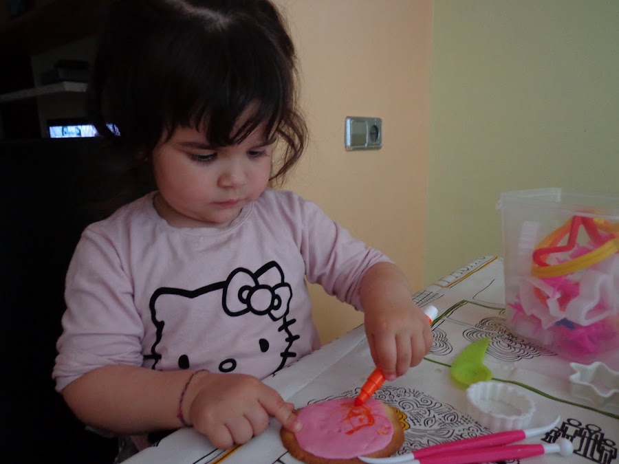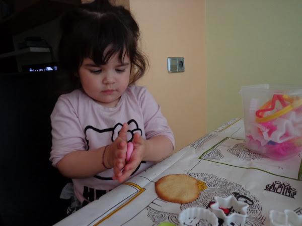 Mirar si es fácil que hasta mi cocinitas de 2 años le gusta ponerse conmigo a decorarlas, eso si, el fondant llega de milagro pues no para de comérselo.