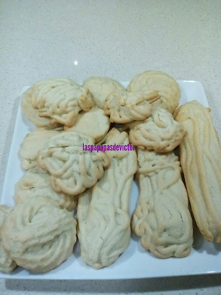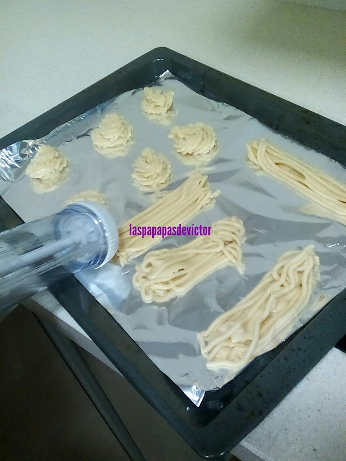 Lo o le dejáis en la nevera min 30 min después lo ponéis en manga pastelera o en la máquina eléctrica de hacer galletas