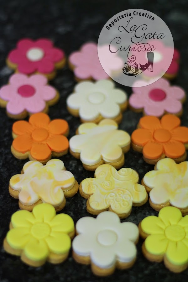 La receta es parecida a la que uso para las galletas normales decoradas con fondant pero con una menor proporción de harina. Como es una prueba solo hemos decorado una pequeña parte y al resto les hemos hecho formas con cortadores. La masa se comporta de maravilla a la hora de hornear, como podéis ver en las fotos las galletas no han perdido la forma, quedan muy chulas y están buenas, no te empalagas con ellas, a mi me han gustado ahora falta que pasen la prueba de los niños.