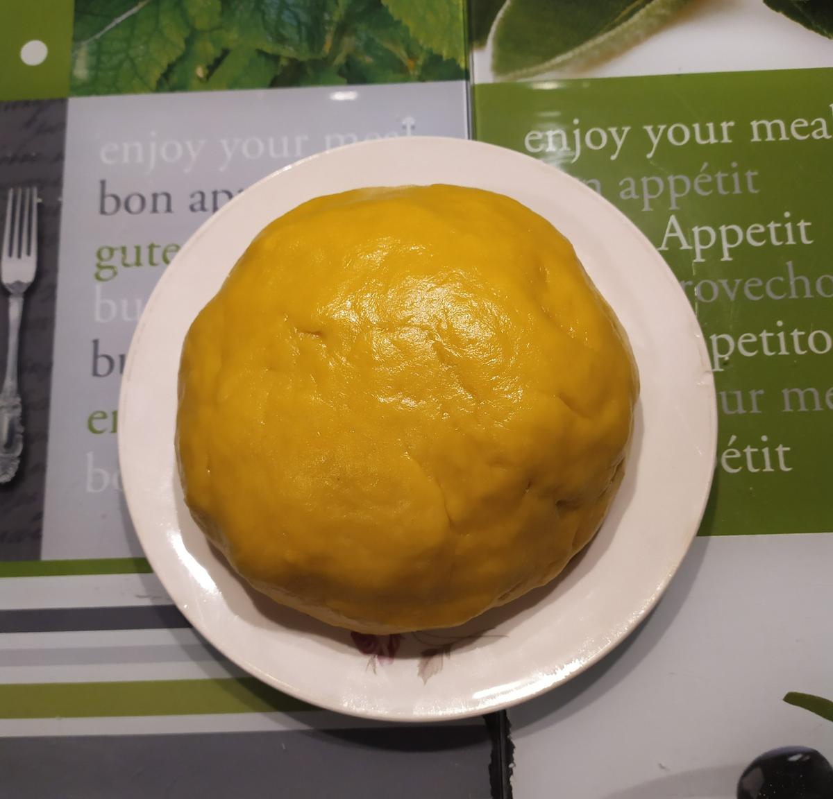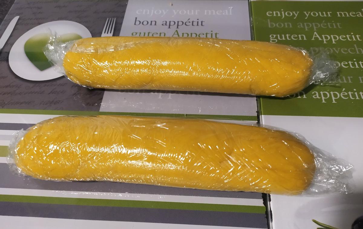 Si tenéis el accesorio amasador en vuestra batidora os aconsejo que lo utilicéis, yo lo hice a mano y resultó un poco difícil de amasar y bastante pegajosa al principio. Cuando notemos que está homogénea, sin grumos y ya no se pega, la dividimos en dos rollos cilíndricos de unos 6 – 8 cm de diámetro, los envolvemos en film transparente y los dejamos reposar unas horas en la nevera (yo los dejé toda la noche).