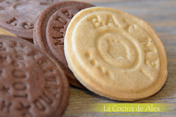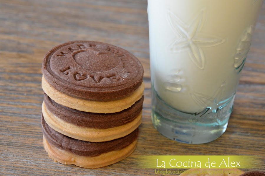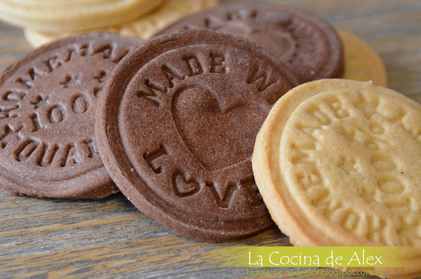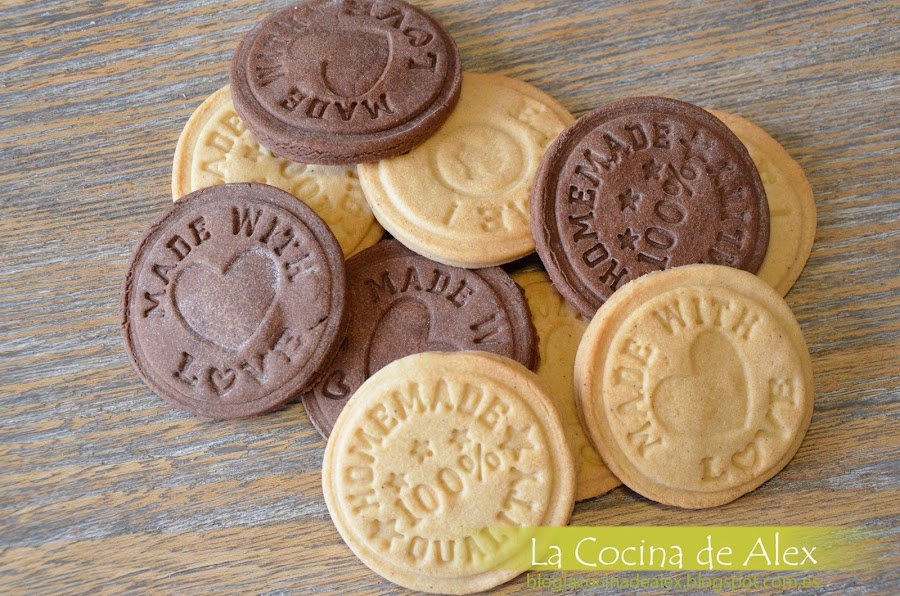 Si no tenéis estos sellos que usamos en la receta, no os preocupéis, simplemente hacéis todo el proceso y en vez de usar los sellos, cortáis con un cortapastas o un cuchillo y le dais la forma que más os guste. Lo del sello es simple adorno y el sabor de la galleta no va a cambiar. También podéis hacer las galletas solo de un sabor, o blancas o de cacao, sin separar la masa en dos partes cuando os digo en los pasos de mas abajo.